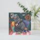 Diese Postkarte wurde von Hand mit Aquarellen, Gouache und Bleistiften realisiert. Es erzählt eine schöne Geschichte der Liebe zwischen einem kleinen Mädchen und ihrem Haustier.