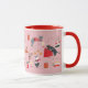 Illustration de Noël rétro mignonne avec des chats autour de l'arbre de Noël, à la recherche de cadeaux, tout-en-un motif imprimé sur arrière - plan rose. OEuvre originale de Caroline Bonne Müller