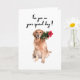 Joli chien avec fleur dans la bouche, chien retriever doré avec roses dans la bouche, carte d'anniversaire de chien.