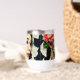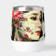 Jolie femme avec fleur rose dans ses cheveux et vintage vibes art collage abstrait ai art.