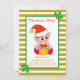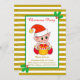 Joli elfe de Noël sur invitation dorée et blanche