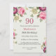 Vous cherchez une invitation charmante pour votre prochain 90e anniversaire bash? Ne cherchez pas plus loin que notre jolie invitation à la floraison ! Avec un design charmant avec de délicates fleurs roses, violettes et crème sur un arrière - plan vert sage, cette invitation personnalisable vous donnera le ton parfait pour votre célébration.