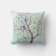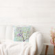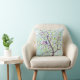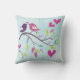 Un joli et amusant coussin de la Saint Valentin est doté d'un arrière - plan d'aquarelle bleu avec un arbre magnifique avec des feuilles de couleurs variées et deux oiseaux amoureux sur le dos, une branche avec de jolis feuilles et coeurs et deux inséparables sur le devant.