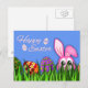 © Sunny Mars Designs - Lapin de Pâques dans l'herbe Carte postale - Ces cartes postales Happy, personnalisées et cool de Pâques présentent un vecteur de dessin animé illustrant un mignon lapin de Pâques rose caché dans l'herbe avec deux oeufs de Pâques à côté de lui de chaque côté.