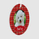Un joli ornement de Noël pour l'animal de compagnie, ce design a un cadre en plaid rouge encerclant la photo de votre animal de compagnie. Remplacez simplement l'échantillon de photo de chien par la photo de votre animal de compagnie et modifiez le nom de l'échantillon de animal de compagnie par le nom de votre animal de compagnie. Vous pouvez repositionner la photo de votre animal en la faisant glisser dans n'importe quelle direction et l'agrandir ou la rétrécir pour la centrer à votre goût. Le design apparaît de part et d'autre de cet ornement, alors assurez-vous d'inclure vos modifications de part et d'autre.