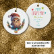 A l'avant de ce joli ornement en céramique de gardien pour enfant est une adorable petite chouette portant un chapeau de Père Noël. Il est perché sur une chaise à feuillage persistant qui brille de lumières de Noël, et une ampoule décorée est suspendue au milieu. Le dos de l'ornement a un joyeux message de Noël et votre signature. Parfait pour une fille, un fils, une petite-fille ou un petit-fils.