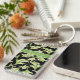 Un porte - clé assez rectangulaire à personnaliser, avec un motif de style de Nouveau d'art de Lis-de-le Valley sur un arrière - plan noir ; "pour l'amour de la collection snob et Painterly de lis".