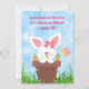 Joli lapin blanc et rose dans un pot de fleurs avec un papillon adorable Invitations de fête d'anniversaire.