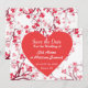 Une charmante carte d'annonce de date sur le thème de la Saint-Valentin pour tout le mois de février, ce modèle présente un cœur rouge vif sur fond de cœurs blancs et rouges. Utilisez les modèles pour insérer vos informations. Personnalisez votre carte d'annonce dès aujourd'hui !