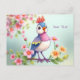 Belle Jolie Carte Postale Florale Oiseau Rose Bleu