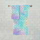 Jolie sirène échelles serviette de bain Set Jolie sirène écailles serviette de bain ensemble rose, bleu et violet motif sirène avec fausse parties scintillant.