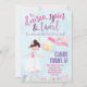 Cette belle invitation à l'anniversaire en aquarelle présente une brunette dansant sur la parties scintillant et des fleurs tenant des ballons.