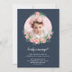 Cette belle invitation de fête d'anniversaire comporte votre photo, encadrée par des fleurs d'aquarelle dans le rose au-dessus d'un arrière - plan foncé de bleu marine.
