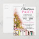 Invitation vos amis et votre famille à vos festivités de vacances avec cette mignonne carte postale d'invitation de Noël fête. Ce dessin est doté d'une aquarelle et d'une illustration dessinée à la main d'un arbre de Noël avec de jolis cadeaux sous l'arbre. Customisez facilement cette invitation de vacances en famille ou en entreprise avec votre nom et vos informations sur le lieu.