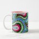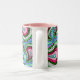 Une tasse avec Paisley girly coloré. Il y a un bon nombre de rose choquant, de vert de menthe, et de bleu-clair.