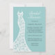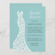 Une robe mariage en dentelle vintage accentue cette invitation à la douche nuptiale sur un joli arrière - plan turquoise.
