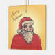 Unique hand-drawn Christmas design in Christmas red and gold from an original watercolor of Saint Nick himself, outfitted in his traditional red stocking cap with white trim. This smiling Santa is one of our favorite Christmas designs.