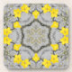 A mesmerizing kaleidoscopic design crafted from vivid yellow flowers and green stems, arranged in a symmetrical, star-like mandala. The grayscale sandy background with sparse grass enhances the vibrant floral pattern, creating a striking contrast between nature’s raw texture and geometric precision. Ideal for art lovers who appreciate the fusion of organic beauty and digital symmetry, this piece brings warmth, balance, and visual intrigue to any space.