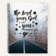 Personalisiertes Notizbuch mit Inspirationsquelle, Zeitschrift zeigt ein Foto einer bewaldeten Straße. Es enthält Bibel Verse Joshua 1:9, "Habe ich dir nicht geboten? Sei stark und mutig! Fürchte dich nicht; lass dich nicht entmutigen, denn der Herr, dein Gott wird bei dir sein, wohin du auch gehst." Stellen Sie die Rückseite mit dem Namen oder den Details Ihrer Wahl ein._
