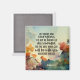 Der inspirierende Anführungsskripturmagnet zeigt ein herbstliches Aquarelldesign mit verbrannten orangen Blätter und einem blauen Himmelshintergrund. Es enthält Bibel Verse Joshua 1:9, "Sei stark und mutig, habe keine Angst oder entmutigt, denn der Herr, dein Gott wird bei dir sein, wohin du auch gehst."