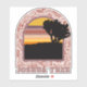 Joshua Tree National Park Sricker. Dieser Aufkleber hat eine Retro-Vibe mit Sonnenuntergang und Silhouette eines Joshua-Baumes. Genießen Sie die gedämpften Wüstenfarben.