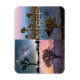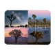 Joshua Tree National Park Sunset Night Landscape Magnet: ein Magnet aus vier Fotos, aufgenommen in Joshua Tree, Kalifornien. Mit einem Foto der Milchstraße, einem nächtlichen Sternpfad, der die Erdrotation um den Nordstern zeigt, einem Sonnenuntergang und einem Sonnenaufgang während der blauen Stunde mit schneebedeckten Bergen hinter den Joshua-Bäumen, ist dies die perfekte Postkarte für Liebhaber des Joshua Tree Nationalparks!