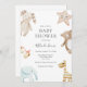 Invitation baby shower amusante avec des jouets de bébé aquarelle, y compris des animaux farcis sans sexe. Personnalisez avec vos informations ou cliquez sur "Cliquez pour customiser plus loin" pour modifier les styles, la taille et les couleurs des polices.