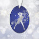 Ce joli ornement de vacances fera un merveilleux cadeau de gardien pour tous ceux qui aiment le tennis! Il présente une joueuse de tennis en silhouette argentée contre un jet de flocons d'argent. Tout est placé sur un arrière - plan bleu vif. L'arrière de l'ornement a le même spray de flocon argenté avec votre texte personnalisé au-dessus et au-dessous. Si vous préférez une forme différente pour l'ornement et que vous devez repositionner le texte ou l'image, utilisez Personnaliser.