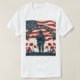 Terre des Libres, à cause du courageux Un design patriotique avec un audacieux drapeau américain agitant derrière la silhouette d'un soldat debout à l'attention. Des pavots rouges fleurissent à la base, symbolisant le souvenir et le sacrifice. L'expression "Terre des Libres, à cause des Braves" arche ci-dessus dans des lettres de style vintage, évoquant l'honneur, la gratitude, et la fierté nationale. Parfait pour les rassemblements du Jour du Mémorial, les défilés, ou comme un hommage sincère à ceux qui ont servi.