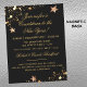 Arrière - plan noir avec des étoiles d'or brillant sur les coins du haut et du bas, des polices de texte de script et de typographie attrayantes, décorez cette invitation de portrait de 4,25" x 5,6", avec un aimant arrière, pour votre fête de la Saint-Sylvestre. Également disponible en 5"x7" taille. Facile à modifier tout le texte à l'aide du Modèle fourni. Vous pouvez laisser n'importe quel texte/ligne vide pour le supprimer. Impression couleur de haute qualité en pleine page. Une enveloppe blanche standard est incluse, cochez "none" pour obtenir un prix réduit. Pour plus d'informations, reportez-vous à la section "À propos de ce produit" à côté.