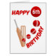 Cette conception a une illustration d'une chauve-souris de cricket, de guichets et d'une balle. La balle a été frappée pendant six heures. Le design peut être customisé avec l'âge d'anniversaire et le nom d'un enfant aimant le cricket. Un design de cricket personnalisé pour les fêtes d'anniversaire des enfants.