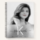 Un arrière - plan métallique à l'aspect faux argenté. Personnalisez et ajoutez votre propre photo, un nom, une lettre monogramme et une année. Le nom est écrit en noir avec un grand script de style à la main moderne avec des swashes. La lettre monogramme en blanc. Pour prendre des notes, comme journal, journalisation, école, travail ou organiser votre vie personnelle ou familiale. Pour que les swashes ne suppriment que le nom de l'échantillon, laissez les espaces ou les émoticônes devant et après le nom