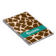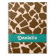 Cette couverture bleue et brune turquoise mignonne et élégante de carnet de notes à spirale d'impression de girafe peut être personnalisée avec votre nom sur la conception de ruban de vert bleuâtre. Ces amusement et carnet girly de peau de girafe peuvent être utilisés comme journal, livre de rendez-vous ou journal intime. Bon pour des approvisionnements de siège social ou de nouveau à l'utilisation d'école. Illustration et © Chrissy H. Studios, LLC de conception. Tous droits réservés.