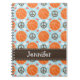 Montrez votre amour et passion pour votre sport préféré avec ces basket-ball, symbole de paix et conception de répétition mignons et personnalisables de coeur dans orange, le bleu et le brun. Cette couverture faite sur commande de carnet de notes à spirale de basket-ball peut être personnalisée avec votre nom ou nom d'équipe. Ceci fait un cadeau d'amusement pour un joueur ou un entraîneur d'équipe de basket de filles. Vous pouvez l'employer comme journal intime, journal ou livre de rendez-vous. Il est également grand pour des approvisionnements de siège social ou de nouveau à l'utilisation d'école. Illustrations originales et © Chrissy H. Studios, LLC de conception. Tous droits réservés.