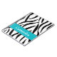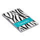 Cette couverture faite sur commande mignonne et élégante de carnet de notes à spirale de peau d'impression de zèbre et de zèbre avec des rayures noires et blanches et un bleu et un blanc de turquoise d'aqua a piqué la conception de ruban peut être personnalisée avec votre nom. Ce carnet à spirale peut être utilisé comme journal aussi, et il est également grand pour des approvisionnements de siège social ou de nouveau à l'utilisation d'école. Conception et © Chrissy H. Studios, LLC d'illustration. Tous droits réservés.