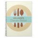 Ce carnet fait la manière parfaite de prendre notes de nouvelles idées de recette. Il peut être customisé avec un nom et comporte un graphique de couvert en bleu et crème.