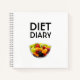 Diet journal design avec une salade de fruits colorés et délicieux, des fruits mélangés comme la cerise, kiwi, mangue, fraise, bleuet, melon. Texte personnalisé.