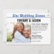 Avec une touche amusante, cette faire-part de mariage est dans le style journal. L'invitation est horizontal et permet une touche personnelle à chaque détail. Les titres, titres et paragraphes qui complètent l'invitation sont disponibles pour personnalisation.