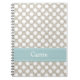 Ces mignon et couverture à spirale assez kaki et blanche de carnet de point de polka avec un motif de point de flottement peut être personnalisé avec votre nom sur la conception bleue et blanche piquée de coquille d'oeuf de ruban. Il est également grand pour des approvisionnements de siège social ou de nouveau à l'utilisation d'école. © conçu Chrissy H. Studios, LLC. Tous droits réservés.