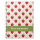 Ce carnet de notes à spirale mignon fait sur commande de fraise élégante et girly avec les fraises de répétition, le point de polka rose et le motif floral peut être personnalisé avec votre nom sur la conception IMPRIMÉE de regard de ruban de point de contraste de vert et de blanc. Conçu par Chrissy H. Studios, LLC. Tous droits réservés.