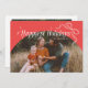 Carte Modèle photo de Noël mignonne avec un texte qui dit "vacances les plus heureuses". Ajoutez vos photos de famille sur cette carte à cadre rouge en arc. Il y a une illustration d'un arc.