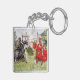 Ce porte - clé carré, zip pull, présente ma peinture aquarelle de deux chevaliers médiévaux engagés dans une joute impromptue, devant un château. Ce tableau était basé sur une joute de la vie réelle, mise en scène au Château de Chilham Kent.