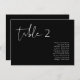 Ce tableau de sièges numéroté comporte une police manuscrite pointue et un design minimaliste moderne. Modifiez facilement le numéro et les noms ainsi que toutes les couleurs pour correspondre à votre événement.