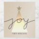 Minimalistischer, einfacher, eleganter, geometrischer Weihnachtsbaum aus Goldfolie in Kombination mit kurzer Begrüßungsbotschaft : Freude. Perfektes Weinlabel mit individuelle Name für Winterurlaub.