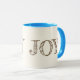 Diese Tasse hat ein zweifarbiges Wort von "JOY" über weißem Hintergrund. Mit himmelblauem Interieur und Griff, mit dem Sie Ihre Farbe auswählen können. Passen Sie diese Tasse an oder kaufen Sie sie wie gezeigt.