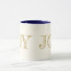 Diese Tasse hat ein mattes goldfarbenes Wort von "JOY" über weißem Hintergrund. Dargestellt mit dunkelblauem Interieur und Griff, mit dem Sie Ihre Farbe auswählen können. Passen Sie diese Tasse an oder kaufen Sie sie wie gezeigt.