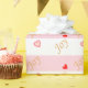 Schönes fröhliches rosa und rotes Herzmuster auf gestreiftem Hintergrund Geschenkpapier.