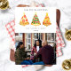 Illustration von baumförmigen Pizzaslicen mit Sternen. Personalisieren Sie den Namen, das Jahr und das Foto.
