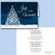 L'avant de cette jolie carte de Noël a un arbre blanc étincelant composé d'images de flocs de neige contre un ciel étoilé bleu profond. Le texte en blanc sur le côté dit "Joy to the World". Le haut de cette carte contient les paroles de la chanson "Joy to the World", qui a été écrite il y a 300 ans. Le fond intérieur contient deux champs de texte que vous pouvez customiser.