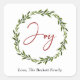 Joy Typography Script Christmas Wreath Holiday Quadratischer Aufkleber